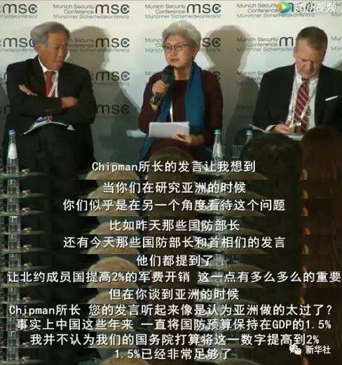 但在你談到亞洲的時候,奇普曼所長,您的發言聽起來像是認為亞洲做得太過了?事實上,中國這些年來,一直將國防預算保持在GDP的1.5%。我并不認為我們的國務院打算將這一數字提高到2%,1.5%已經非常足夠了。