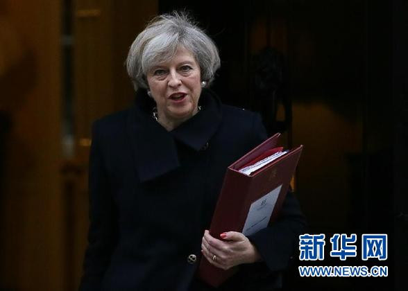 2月8日,在英國倫敦,英國首相特雷莎·梅離開唐寧街10號,準備前往議會大廈進行首相問答。新華社發(蒂姆·愛爾蘭攝)