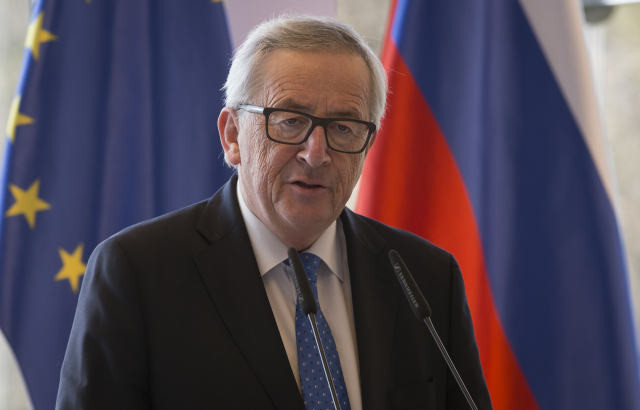 A+ 大2017年3月2日,歐盟委員會(huì)主席讓-克洛德·容克在斯洛文尼亞舉行的新聞發(fā)布會(huì)上發(fā)言。(新華/美聯(lián))