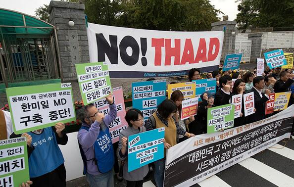 A+ 大韓國首爾,民眾在國防部外集會,抗議部署薩德系統。(資料圖片)