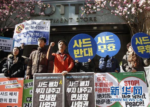 A+ 大2月23日,韓國民眾在首爾的樂天百貨前舉行集會,反對樂天集團向韓國國防部出讓土地部署“薩德”系統。 新華社記者姚琪琳攝