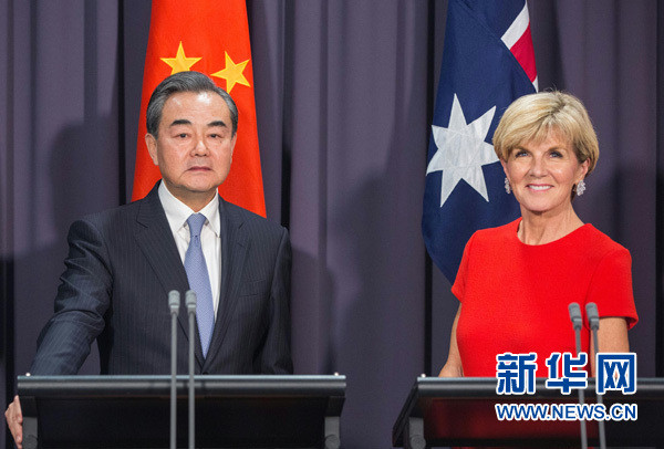A+ 大2月7日,在澳大利亞首都堪培拉,中國外交部長王毅(左)與澳大利亞外長畢曉普共同主持第四輪中澳外交與戰(zhàn)略對話后會見記者。新華社發(fā)(朱宏業(yè)攝)
