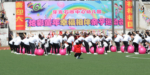 本報訊(通訊員 隋穎)6月2日,牙克石市中心幼兒園首屆親子運動會在牙克石體育場舉行,牙克石市教育和科技局負責人和幼兒園全體師生、家長歡聚一處,共慶六一兒童節。