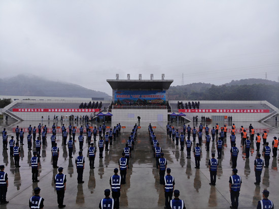 森林消防隊伍“火焰藍”首屆特種救援技能比武開幕式現場(福建省森林消防總隊供圖)