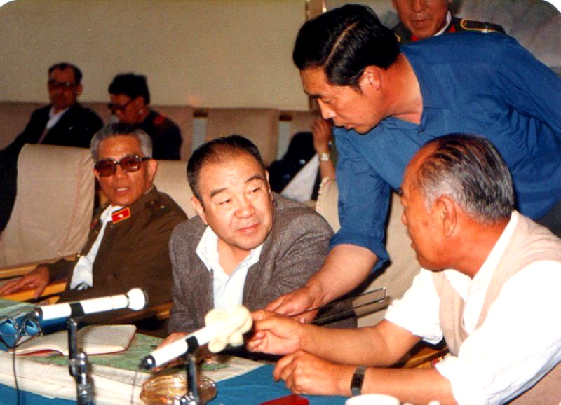 1985年在林區(qū)聽取原林管局局長(zhǎng)蔡延松匯報(bào)工作。