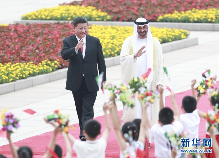 習近平指出,全球化時代,合作共贏才是各國相處之道,自我封閉孤立只能損害自身利益。中阿關系目標遠大,內涵豐富,互利互惠,是百年大計,成為不同地域、不同文化、不同類型國家進行戰略合作的典范。今年是新中國成立70周年,也是中阿建交35周年,具有承前啟后的特殊意義。你在此時來華訪問,我們將共同發表《中華人民共和國和阿拉伯聯合酋長國關于加強全面戰略伙伴關系的聯合聲明》,這將是中阿關系史上又一份重要的綱領性文件。我愿同你一道,繼續在紛繁復雜中保持定力,在局勢變化中把穩航向,引領推動中阿全面戰略伙伴關系不斷取得新成果,更多更好造福兩國人民。