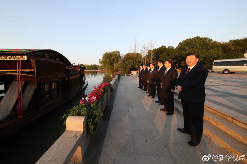 黨的十九大閉幕僅一周,習(xí)近平總書記帶領(lǐng)中央政治局常委來到上海中共一大會址和浙江嘉興南湖紅船,回顧建黨歷史,重溫入黨誓詞,宣誓堅定政治信念。