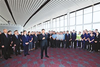 習近平強調,大興國際機場能夠在不到5年的時間里就完成預定的建設任務,順利投入運營,充分展現了中國工程建筑的雄厚實力,充分體現了中國精神和中國力量,充分體現了中國共產黨領導和我國社會主義制度能夠集中力量辦大事的政治優勢。新中國70年何等輝煌!中國共產黨領導中國人民實現了一個又一個“不可能”,創造了一個又一個難以置信的奇跡。奇跡是干出來的,社會主義是干出來的。中國共產黨和中國人民有雄心、有自信繼續奮斗,朝著實現“兩個一百年”奮斗目標、實現中華民族偉大復興的中國夢奮勇前進。實踐充分證明,中國人民一定能,中國一定行。