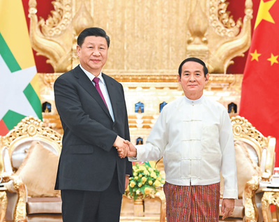 內比都1月17日電 (記者杜尚澤、丁子)當地時間1月17日下午,國家主席習近平在內比都同緬甸總統溫敏會談。