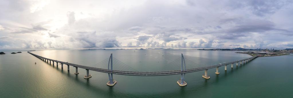 一橋連三地,天塹變通途。在港珠澳大橋開通時,習近平總書記乘車巡覽大橋,稱贊:“港珠澳大橋的建設創下多項世界之最”“體現了一個國家逢山開路、遇水架橋的奮斗精神”;