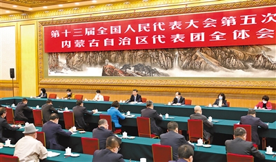 內蒙古代表團審議熱烈,氣氛活躍。張磊、郭艷玲、賈潤安、王曉紅、馮艷麗、趙會杰、史玉東等7位代表分別就完整準確全面貫徹新發展理念、加強草原生態建設、煤化工產業助力實現碳達峰碳中和、將鑄牢中華民族共同體意識融入辦學治校教書育人全過程、為實現高質量發展貢獻航天力量、推進鄉村振興、振興民族奶業等問題發言。習近平不時插話并記錄。