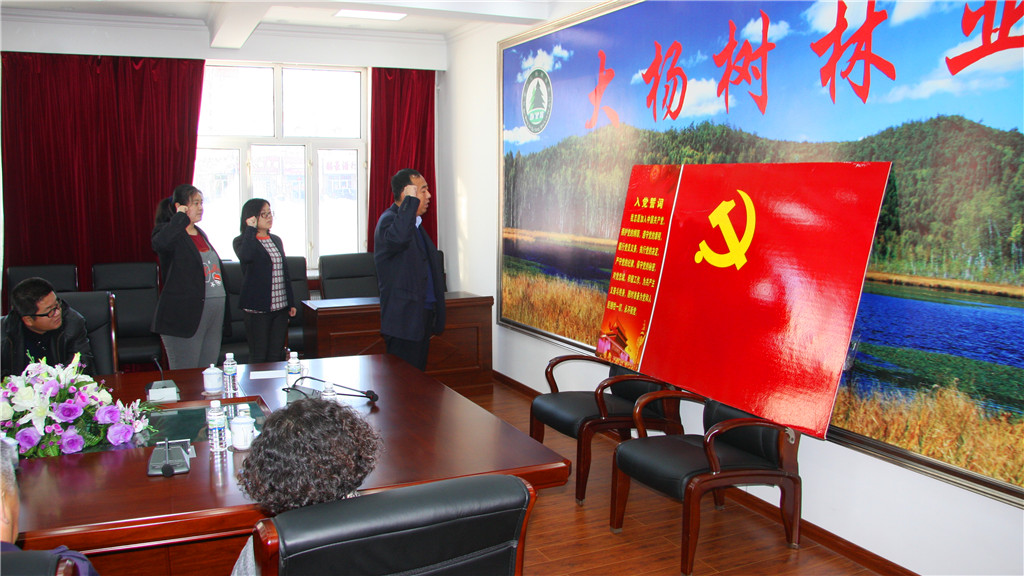 11月21日,內蒙古大興安嶺大楊樹林業局機關黨委舉行入黨宣誓儀式,在機關黨總支書記領誓下兩名預備黨員進行入黨宣誓,機關黨委各支部書記參加了此次宣誓儀式。(吳振威)