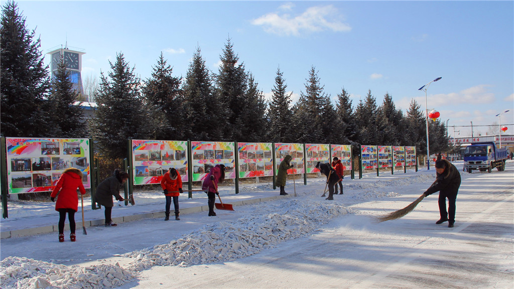 11月15日,內蒙古大興安嶺吉文林業局組織機關、基層數百名職工義務清雪。為當地居民便利出行、安全出行提供保障。(毛虎壯)