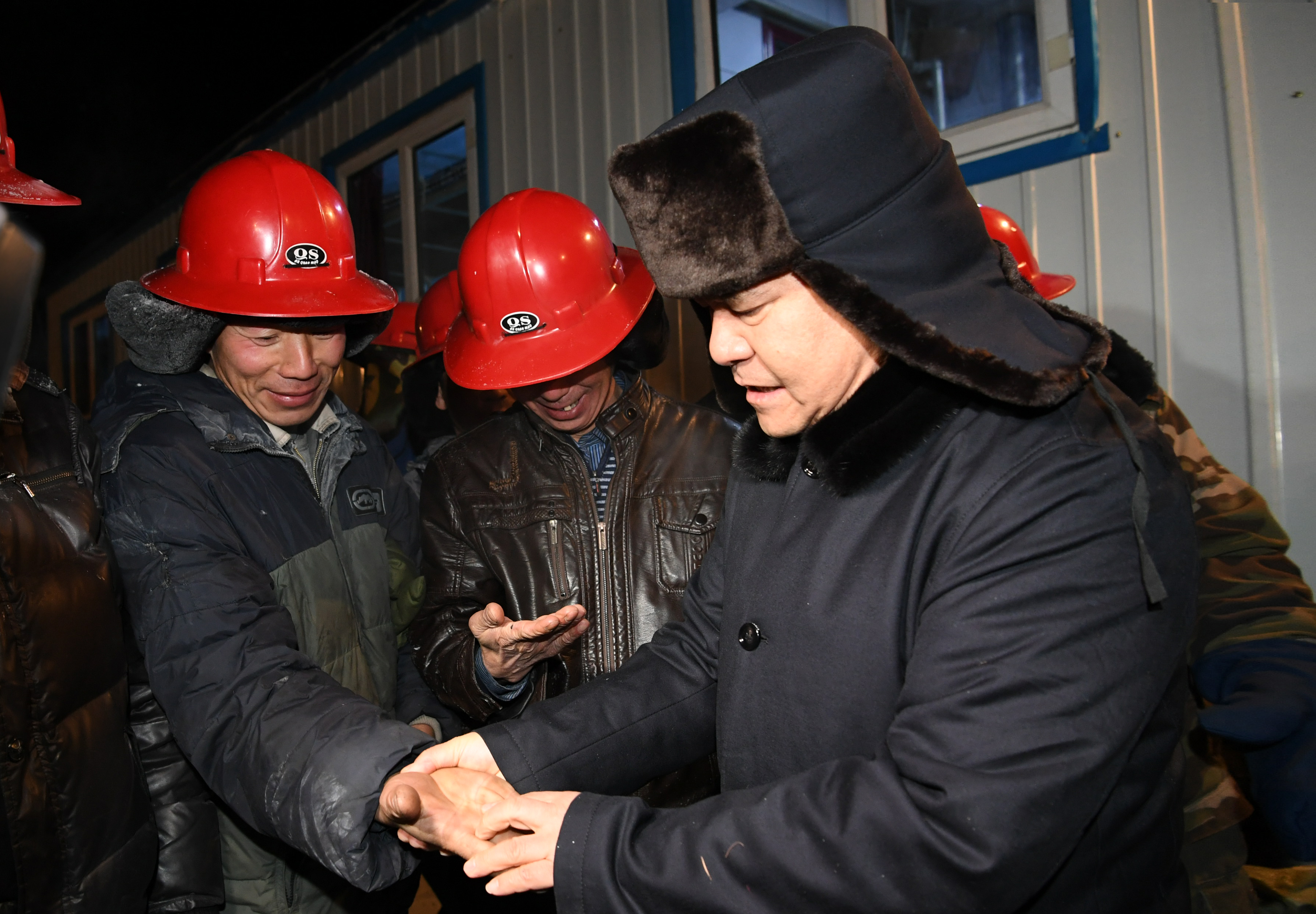 12月11日,自治區黨委書記李紀恒到根河林業局調研,他拉著林業工人的手動情地說:“全是老繭,大家辛苦了!”(《內蒙古日報》記者 袁永紅攝)