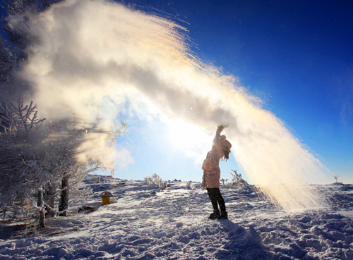 1月3日早晨,阿爾山最低溫度達到零下25度,當地民眾開始玩起了“潑水成冰”的游戲,有人用水杯裝滿熱水,向空中一潑,水迅速結成冰霜。阿爾山市地處大興安嶺嶺脊中段,冬季由于受西北冷空氣的影響冷氣團長期滯留,多寒潮風雪天氣。大寒期達3個多月,積雪覆蓋期為152.2天。冬雪量平均達30毫米,占年降水量的6.5%,極端最低氣溫為-45.7℃,出現在1966年1月19日。(內蒙古日報社融媒體記者 通拉嘎)