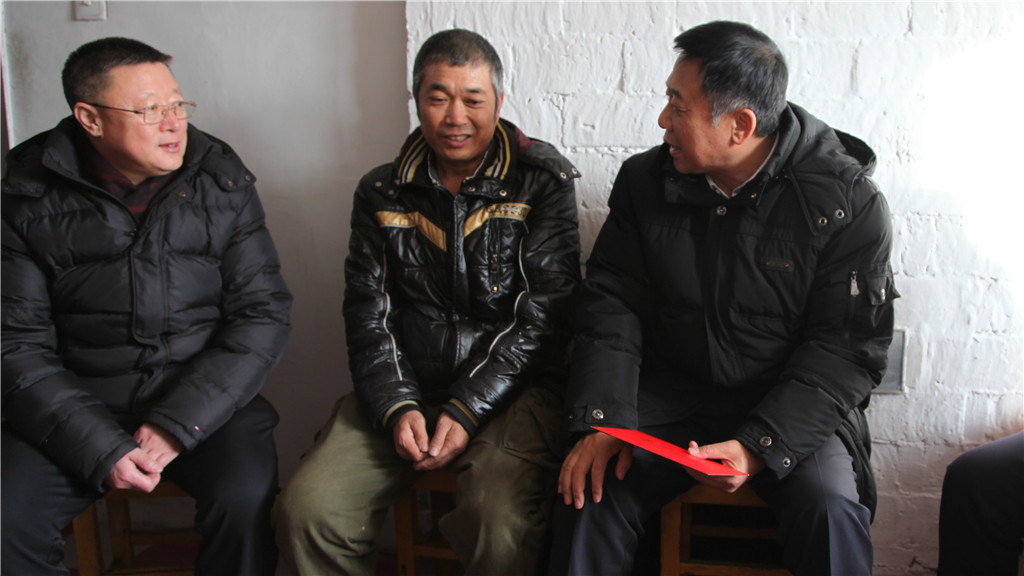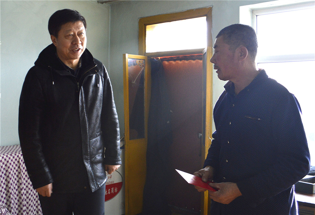 1月11日,內蒙古森工集團副總經理、總工程師曹起武來到金河森工公司慰問困難職工,為他們送去慰問金及新春的祝福。(劉宏偉 攝)