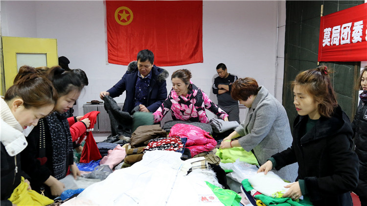 3月12日上午,莫爾道嘎林業局團委聯合內蒙古大興安嶺林業科學技術研究所共同組織開展“攜手送關懷 衣衣暖人心”衣物捐贈活動,為貴州貧困山區的學生和兒童捐贈各種衣物670余件。(杜鳳明)