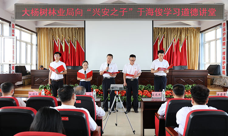 為紀(jì)念于海俊同志逝世一周年,追憶“興安之子”于海俊為綠色事業(yè)執(zhí)著奮斗的人生軌跡。6月18日,內(nèi)蒙古大興安嶺大楊樹林業(yè)局開展 向“興安之子”于海俊學(xué)習(xí)道德講堂活動,通過聽歌曲、看短片、講故事、誦英雄、發(fā)倡議、做點(diǎn)評等環(huán)節(jié),引導(dǎo)全局干部職工以先進(jìn)典型為榜樣,繼續(xù)發(fā)揚(yáng)“艱苦奮斗,無私奉獻(xiàn)”的大興安嶺人精神。(李志鳳 秦芹 攝)