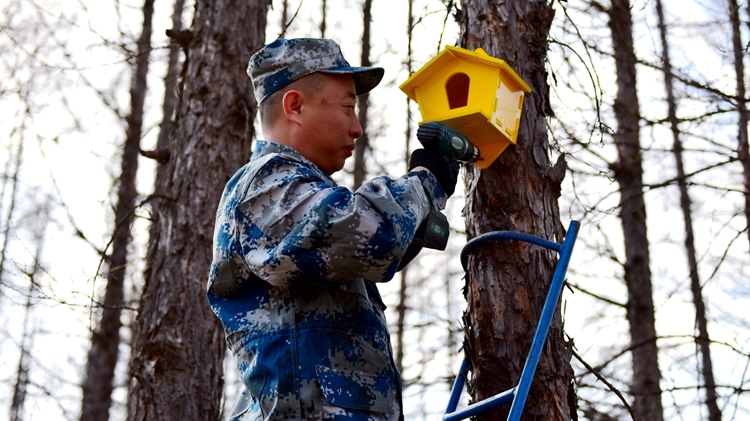 人工懸掛鳥巢箱 為鳥兒“安家”