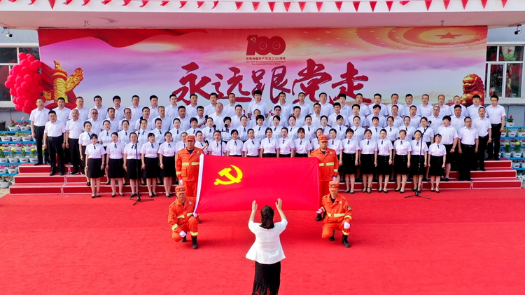 在中國共產黨成立100周年之際,6月29日,庫都爾地區慶祝中國共產黨成立100周年“永遠跟黨走”職工大合唱在庫都爾森工公司院內激情唱響。