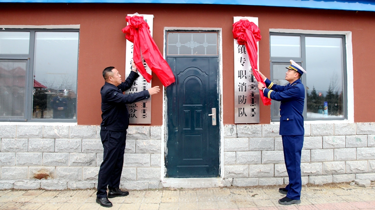 阿爾山森工公司聯合阿爾山市消防救援大隊舉行共建天池鎮專職消防隊揭牌儀式