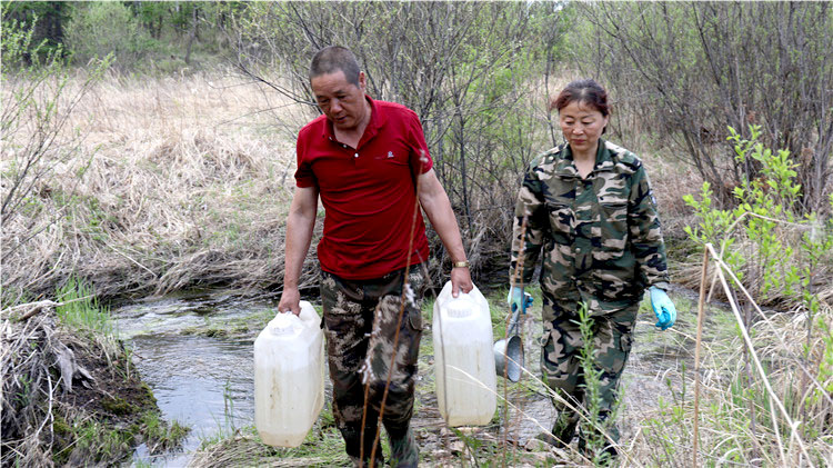 離駐寨帳篷不遠處有一條小溪。每天工作回來,夫妻倆都會幫后勤做飯人員到這里打水。倆人嘮會嗑,這是他們一天中最浪漫的事。