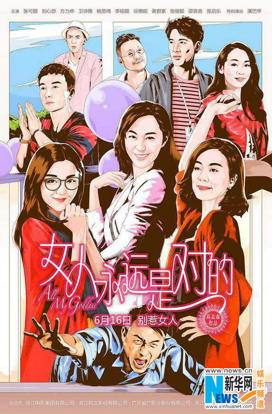 A+ 大6月6日,由高志森執導,張可頤、劉心悠、方力申、等聯袂主演的電影《女人永遠是對的》發布了手繪版海報。海報中三姐妹各顯身手,將“鉆石王老五”壓制在窗臺上,好閨蜜張嘉欣則和小男生走在了一起。面露喜色、神情各異的人物,尤其是“鉆石王老五”的夸張表情突顯了幽默搞笑的特質,輕松鮮亮的色系契合了影片的喜劇風格。