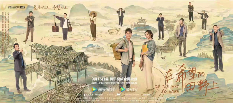 9月8日,網劇《在希望的田野上》定檔9月15日,即將在騰訊視頻全網獨播。該劇由企鵝影視和福得文化出品,西安電影制片廠、上海影視傳媒股份有限公司、中共銅仁市碧江區委宣傳部聯合出品,孫忠懷、饒俊擔任出品人,趙文濤、陳焱任聯合出品人,韓志杰、黃獻松擔任總監制,方芳任總制片人,饒俊擔任總制片人兼編劇,王駿曄執導,李黎明、張志煒、任強、劉運強任制片人、朱振軍任執行制片人,曹駿、安悅溪、羅鋼、趙亮領銜主演,張丹峰、楊皓宇特別主演,高一清、胡文喆、崔莉雅、徐玉琨、蔣一銘、曹毅主演,今日,該劇發布定檔預告和群像海報。預告片中,一群追夢青年“花式”上陣回歸田野,為白果村村民們找尋振興之路,真實的鄉村取景配以高燃的背景音樂,將一幅熱血昂揚的鄉村振興畫卷呈現給觀眾。同時發布的群像海報中,充滿詩情畫意的鄉村田園與熱情洋溢的基層駐村隊員巧妙融合,溫暖色調與多種元素的搭配令觀眾對鄉村振興產生無限憧憬。