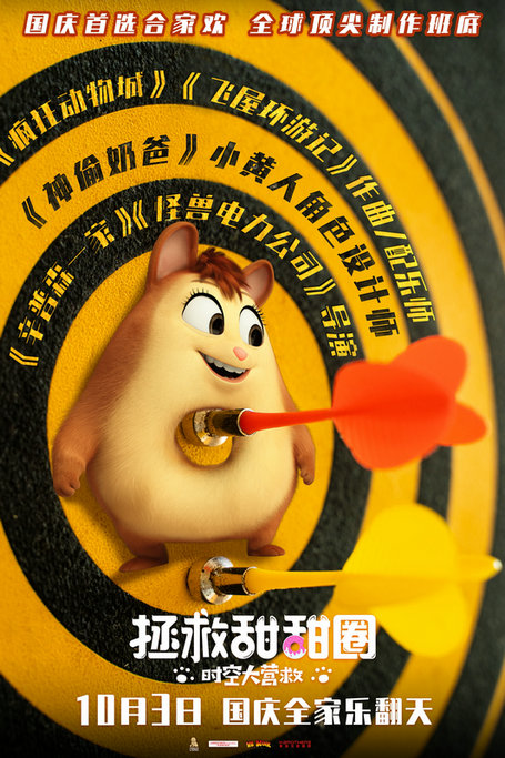 在曝光的定檔海報中,O妹現身在明黃色的飛鏢盤上,表情萌動可愛,滿臉笑意看向遠處,似乎在期待著新的冒險。從O妹的毛發質感和細節處理上,便可對影片的高品質窺見一斑。為了打造出一部真正具有中國文化特色并兼備世界級制作水準的動畫大片,《拯救甜甜圈:時空大營救》費盡心力集結到了當前全球一線動畫制作團隊加盟影片進行打磨。導演大衛·西爾弗曼曾執導電影 《怪獸電力公司》和《辛普森一家》,并多次獲得美國艾美獎、安妮獎等好萊塢知名獎項;曾為《瘋狂動物城》《頭腦特工隊》等多部奧斯卡最佳動畫長片配樂的作曲家邁克·吉亞奇諾擔任配樂。值得一提的是,他還曾并憑借《飛屋環游記》獲得第82屆奧斯卡最佳配樂獎;而影片中萌力十足的各種形象,則由風靡全球的《神偷奶爸》系列動畫、小黃人角色設計師彼得·德·塞弗制作完成。海內外金牌制作團隊靈感互相碰撞,不同文化充分磨合交流,令人期待不已。