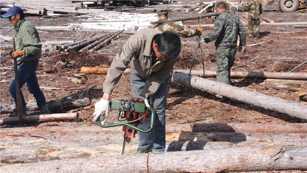 5月17日,滿歸林業局孟庫林場組織部分機關干部職工投入到儲備原條生產,用實際行動轉變機關工作作風。(白俊清)