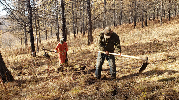 阿里河林業局興阿林場與駐場派出所聯合檢查本場施業區公路建設野外作業點