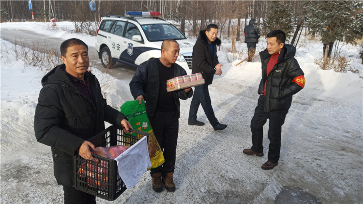 在元旦到來之際,12月30日,滿歸林業局有限公司北岸林場領導班子為1409遠山管護檢查站的夫妻管護員送去節前慰問品,在慰問與關懷的同時,林場領導還對管護站進行了節前安全檢查。(姜文宇 攝)