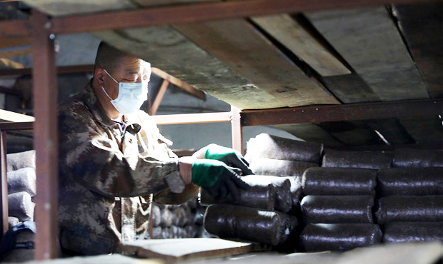 古營河林場(chǎng)職工對(duì)培養(yǎng)料進(jìn)行篩分、加濕
