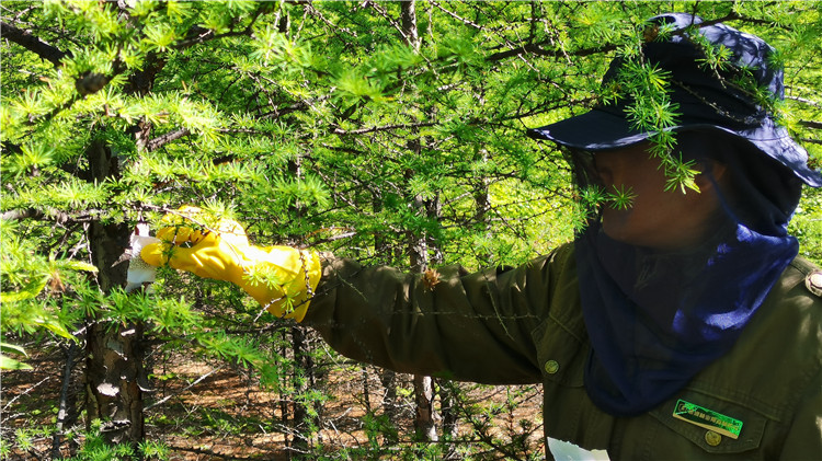 克一河森工公司森防站組織安裝昆蟲信息素天牛誘捕器