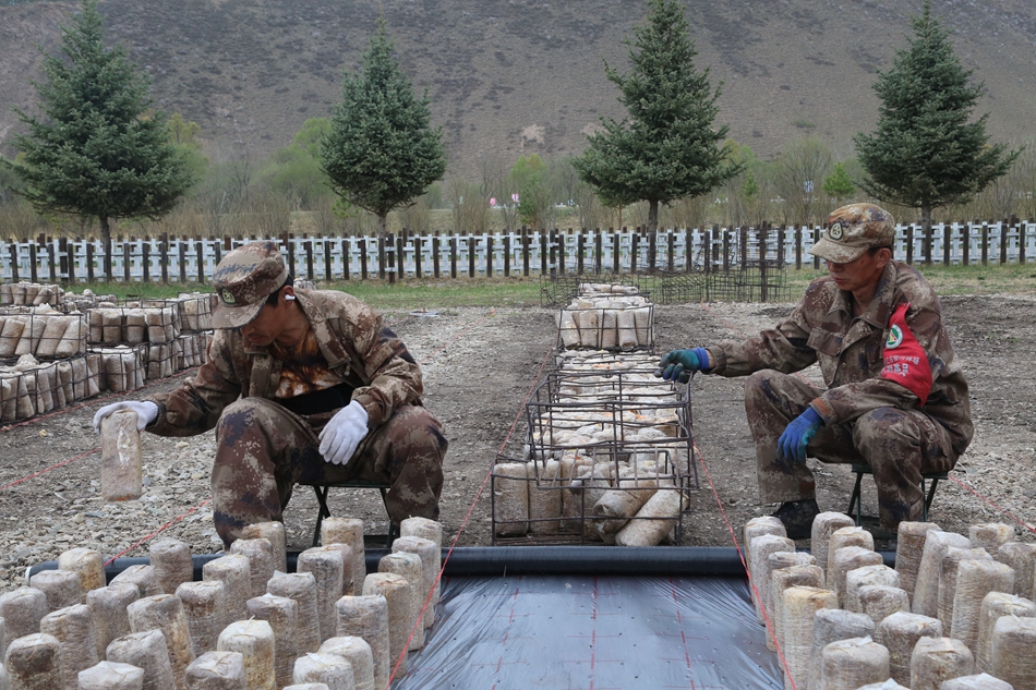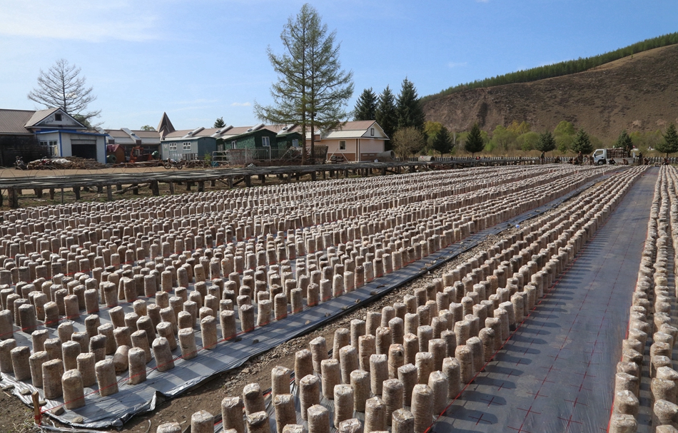 近日,綽爾森工公司古營河林場地擺黑木耳菌袋,共培植黑木耳10萬袋。(李學玲 李浩)