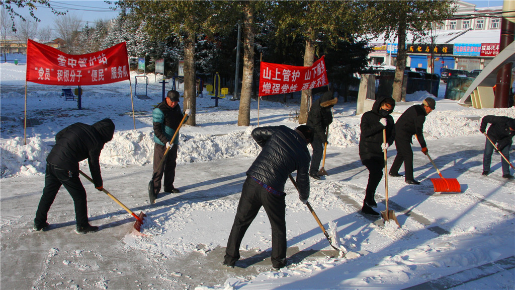 11月14日,大楊樹林業局奎中林場干部職工又一次自發到興林步行街義務開展清理路面積雪活動,全場干部職工手持鐵鍬、掃帚、鐵鏟經過一上午認真仔細清掃,近200米的道路積雪已全部清理得干干凈凈,這已是奎中林場黨支部連續第三年組織本單位干部職工自發開展“學雷鋒志愿者便民服務”活動?!吧仙焦茏o,下山服務”的鮮艷條幅飄展在凜冽寒風中,讓周圍群眾真切感受到了雷鋒精神永駐心間。(吳振威王明雨)