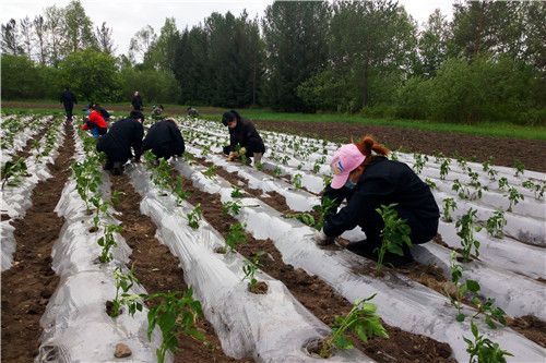 6月13日,為了讓賓客吃到純天然、無污染的綠色蔬菜,克一河林業局諾敏山莊組織職工來到生態園,種植茄子、辣椒、西蘭花等蔬菜。(鄭艷 李雪攝)