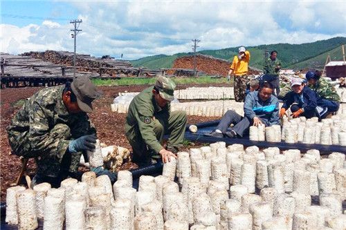 6月18日,綽爾林業(yè)局貯木場(chǎng)職工正忙著將培育好的黑木耳菌袋擺放到露天場(chǎng)地,為黑木耳分床。(張曉紅)