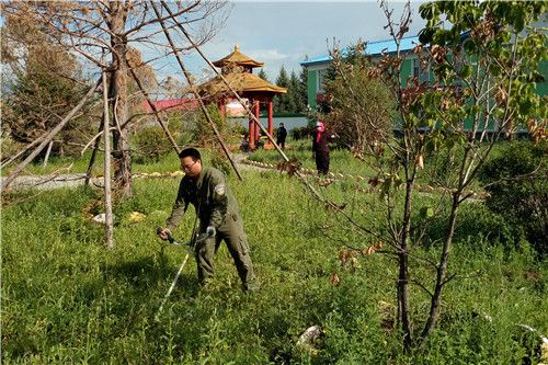 7月27日,吉文林業局防火辦組織機關干部職工清理S301省道旁生態景觀亭,美化亮化綠化周邊工作、生活、人居環境。(司新文)