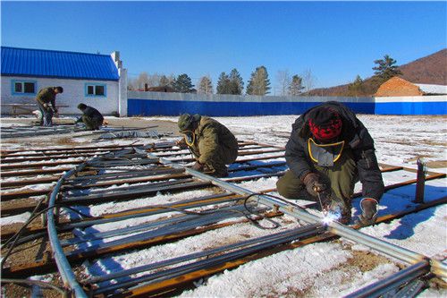 10月27日,吉文林業(yè)局吉文管護所組織職工焊接鋼架大棚,為明年春季大棚育苗做好準備。(李傳梅)