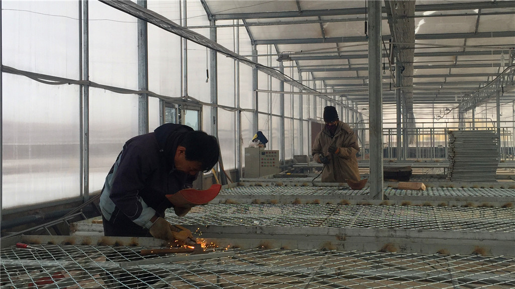 11月15日,庫都爾林業局苗圃職工正在陽光溫室大棚緊張施工,焊接移動苗床。為今后運用先進育苗方法,利用溫室移動苗床,培育大量優質壯苗打下良好基礎。(梁開花)