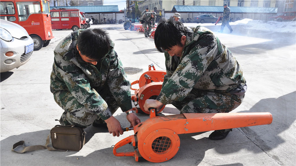 3月24日,甘河林業局防火辦組織快撲隊員進行防撲火機具維修技能演練,全力做好防撲火準備工作。(王森)