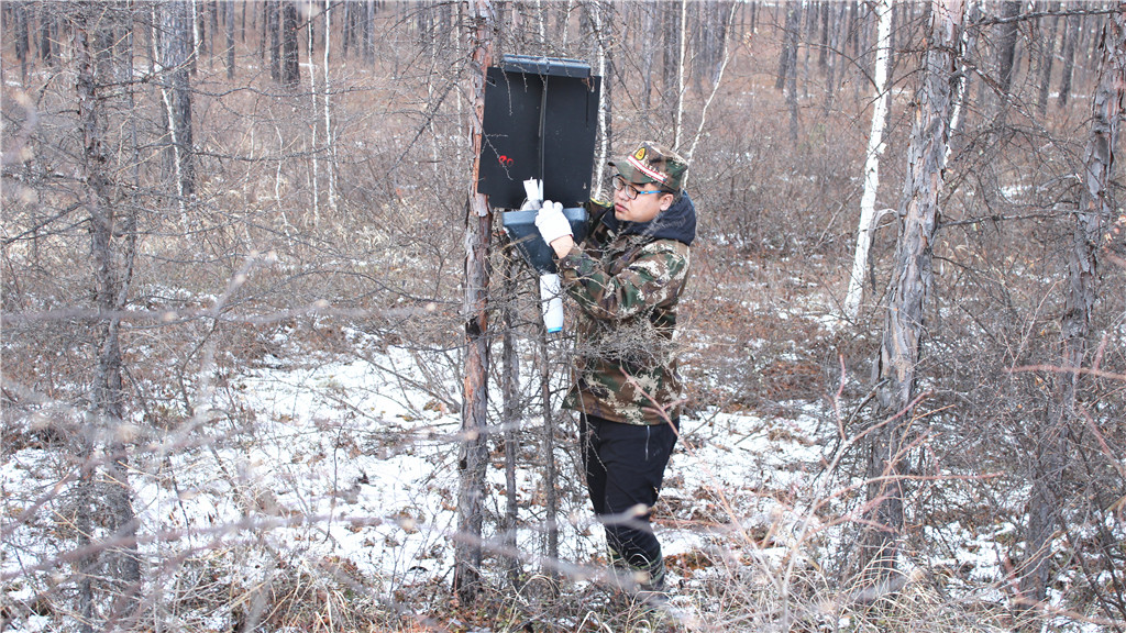 4月9日,滿歸林業(yè)局森防站測報員克服極端天氣對誘捕器進(jìn)行清理修補(bǔ),為近期天氣轉(zhuǎn)暖無公害防控火燒跡地落葉松八齒小蠹害蟲打下堅實(shí)基礎(chǔ)。(高俊平)
