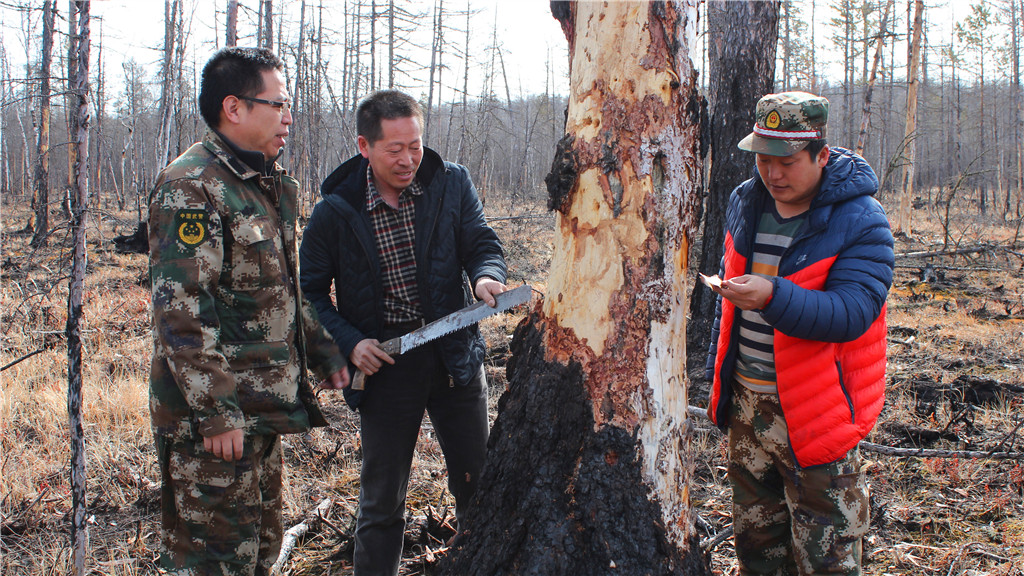 4月14日,滿歸林業局森防站監測人員對火燒跡地蛀干害蟲展開調查監測,為下一步火燒跡地蛀干害蟲科學防控提供詳實的監測數據。(高俊平)