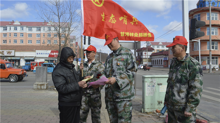 4月2日,甘河林業局青年志愿者組成“生態哨兵”開展系列防火宣傳活動,深入防火檢查站堵卡,在林間干道和墓地巡護,切實把好清明節防火關口,并在人口集中區域散發了防火宣傳單,為防火宣傳周營造了良好的輿論氛圍。(隋海濤 攝)