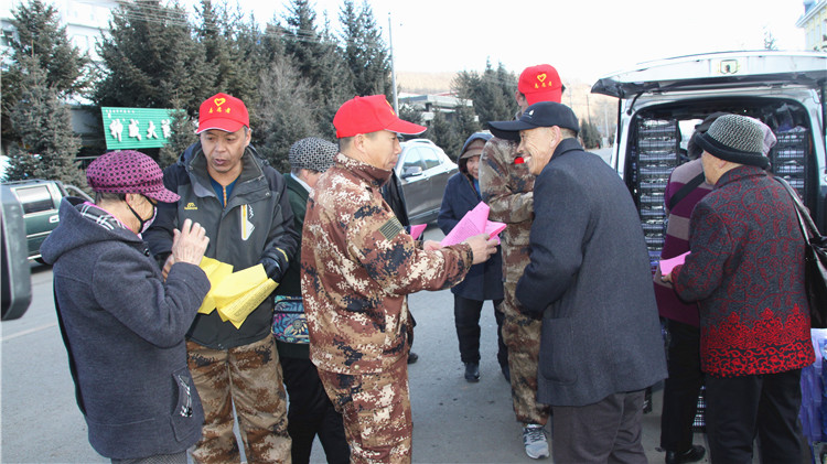 3月29日,大楊樹林業局庫莫林場組織人員深入大庫莫村、小庫莫村、十一連隊開展防火宣傳工作,倡導當地居民清明節要文明祭祀,禁止上墳燒紙。活動中,他們利用車載廣播進行防火宣傳,同時發放宣傳單100余份,懸掛條幅2條,彩旗50面。(趙冬穎 攝)