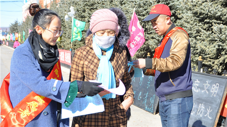 清明節將至,4月2日,伊圖里河林業局文明辦、團委組織志愿服務隊走上街頭開展春季防火宣傳工作。活動中,志愿者深入商場、菜市場等人員密集場所,向廣大職工群眾發放《致全局廣大職工家屬的一封信》、《森林防火》宣傳單400余份,向廣大職工群眾傳播防火知識,進一步增強了轄區職工群眾森林防火的法律意識。引導他們弘揚中華民族美德,文明祭祖,為林區節日期間防火安全奠定了基礎。(王剛 張穎 攝)