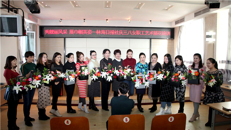 3月6日下午,林海日報社舉辦了以“秀靚麗風采 展巾幗英姿”為主題的三八女職工藝術插花培訓活動。(劉磊 攝)