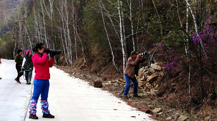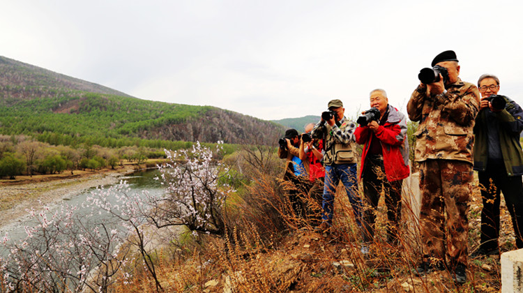 時下,正是杜鵑花、山杏花盛開季。攝影采風(fēng)團(tuán)成員沿綽爾河南下,不時被山崖上的片片粉紅吸引,定格一幅幅杜鵑花開峭壁的堅毅之美。在敖尼爾林場生態(tài)功能區(qū)老虎洞景區(qū),攝影師們步入綽爾河畔,從不同視覺捕捉杜鵑倩影,進(jìn)行攝影創(chuàng)作;金色河灣景區(qū)河灣峭壁上盛開的山杏花讓這里的春色與眾不同,吸引了攝影師們流連駐足,不時按動快門。
