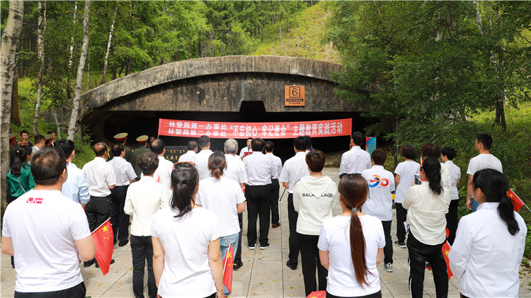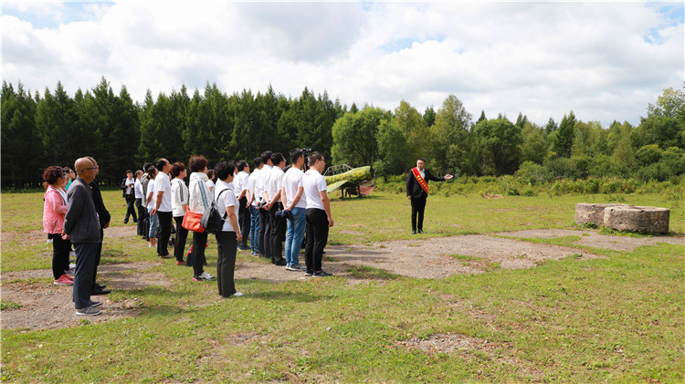 在綽源林業局,第一、第二辦事處廣大黨員干部職工先后參觀了森林防火陳列館、濕地生態館、醒園,接受了一次深刻的生態文明教育,并在綽源林業局自治區級愛國主義教育基地——侵華日軍綽源空軍基地遺址前開展了主題為“不忘初心鑄黨魂 牢記使命守林海”的現場教育。通過聽一堂“不忘初心 牢記使命”專題黨課、愛國詩朗誦、歌曲《我和我的祖國》和重溫入黨誓詞等環節,使第一、第二辦事處廣大黨員干部職工接受了一次理想信念教育和思想政治洗禮。